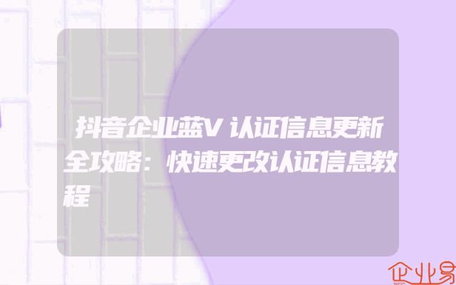 - 抖音企业蓝V认证信息更新全攻略:快速更改认证信息教程