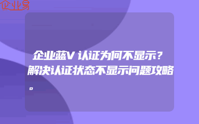 - 企业蓝V认证为何不显示?解决认证状态不显示问题攻略。