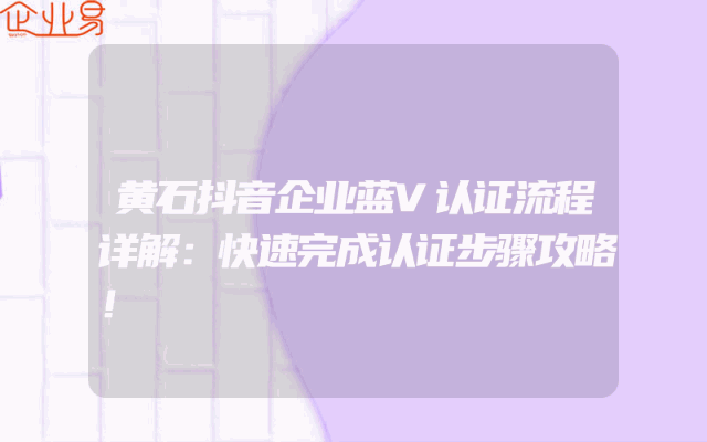 - 黄石抖音企业蓝V认证流程详解:快速完成认证步骤攻略!