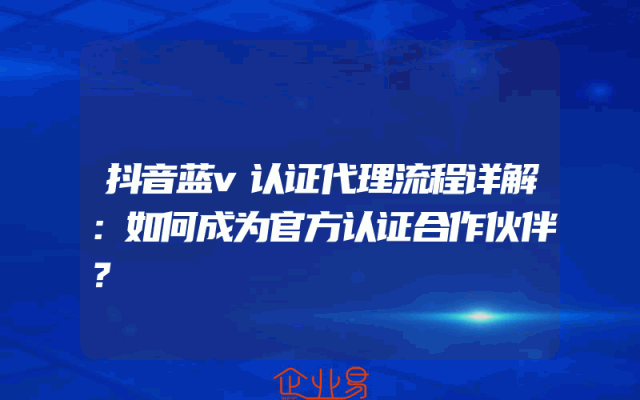 - 抖音蓝v认证代理流程详解:如何成为官方认证合作伙伴?