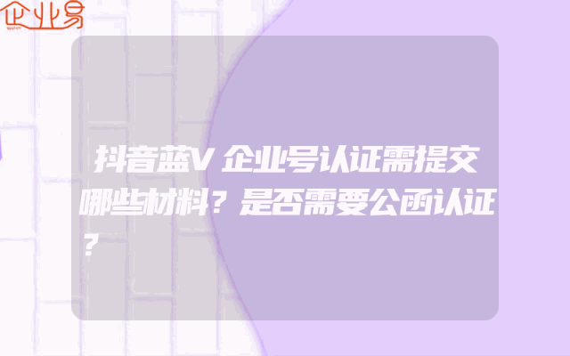 - 抖音蓝V企业号认证需提交哪些材料?是否需要公函认证?