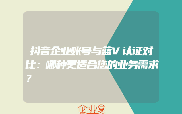 - 抖音企业账号与蓝V认证对比:哪种更适合您的业务需求?
