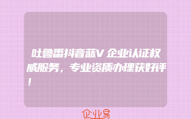 - 吐鲁番抖音蓝V企业认证权威服务,专业资质办理获好评!