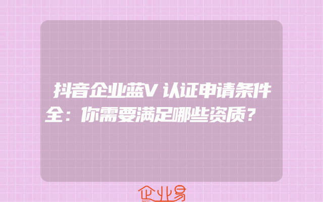 - 抖音企业蓝V认证申请条件全:你需要满足哪些资质?