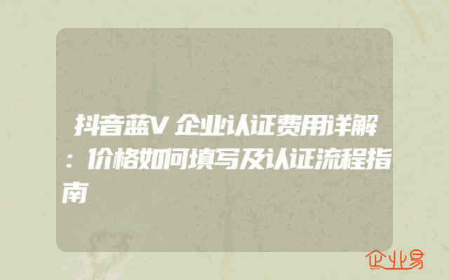 - 抖音蓝V企业认证费用详解:价格如何填写及认证流程指南