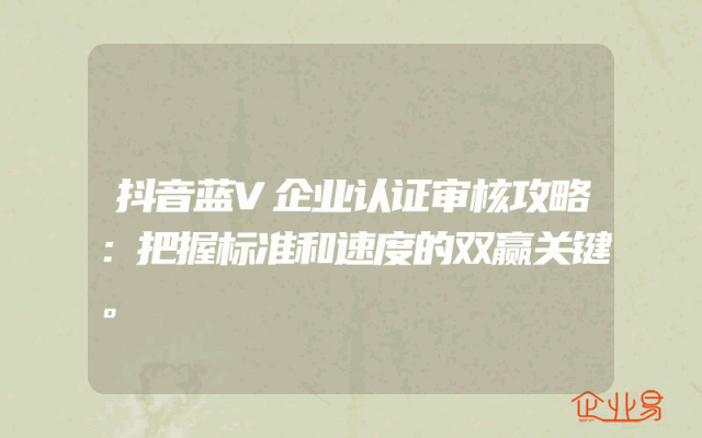 - 抖音蓝V企业认证审核攻略:把握标准和速度的双赢关键。