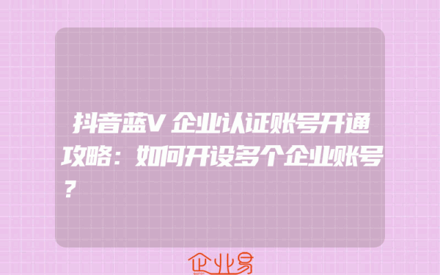- 抖音蓝V企业认证账号开通攻略:如何开设多个企业账号?