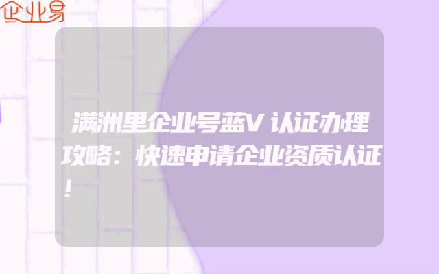 - 满洲里企业号蓝V认证办理攻略:快速申请企业资质认证!