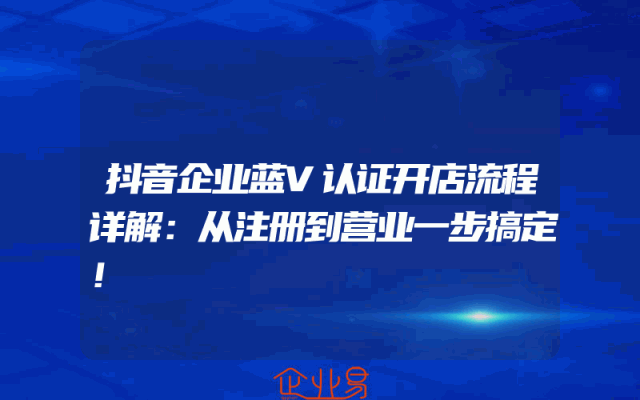 - 抖音企业蓝V认证开店流程详解:从注册到营业一步搞定!