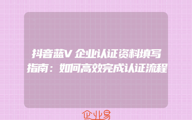 - 抖音蓝V企业认证资料填写指南:如何高效完成认证流程