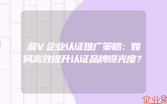 - 蓝V企业认证推广策略:如何高效提升认证品牌曝光度?