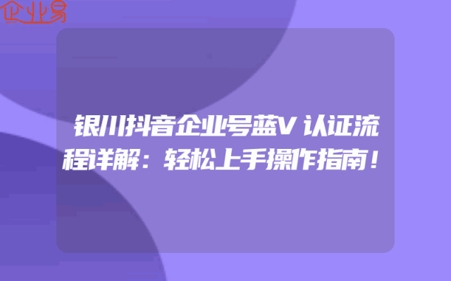 - 银川抖音企业号蓝V认证流程详解:轻松上手操作指南!
