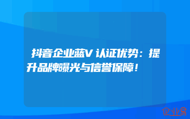 - 抖音企业蓝V认证优势:提升品牌曝光与信誉保障!