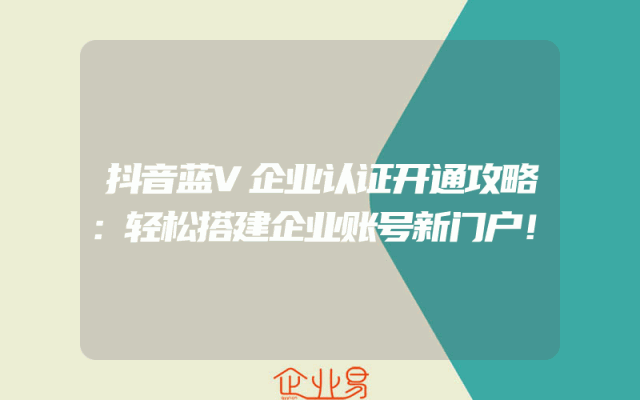 - 抖音蓝V企业认证开通攻略:轻松搭建企业账号新门户!