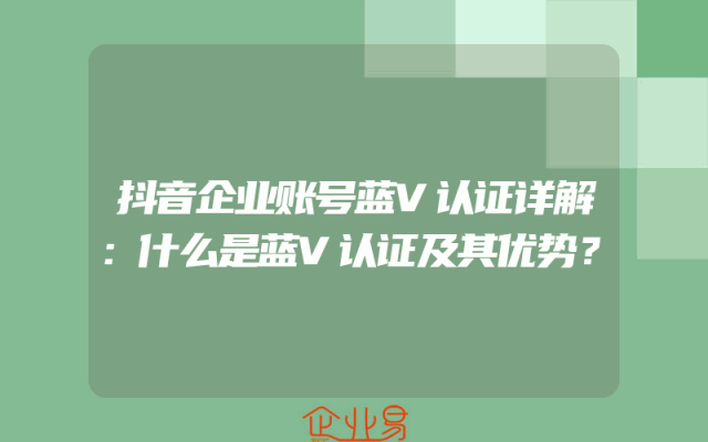 - 抖音企业账号蓝V认证详解:什么是蓝V认证及其优势?