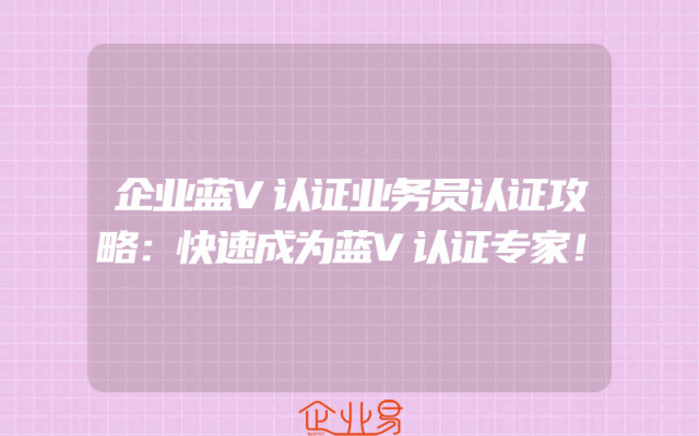 - 企业蓝V认证业务员认证攻略:快速成为蓝V认证专家!