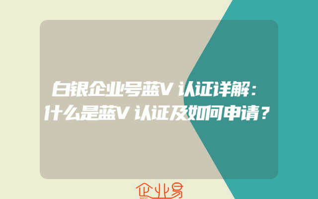 - 白银企业号蓝V认证详解:什么是蓝V认证及如何申请?