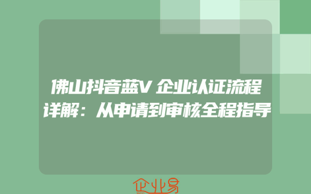 - 佛山抖音蓝V企业认证流程详解:从申请到审核全程指引