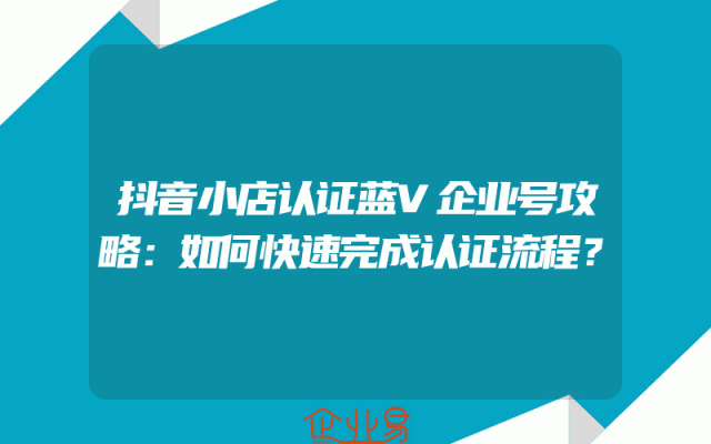 - 抖音小店认证蓝V企业号攻略:如何快速完成认证流程?