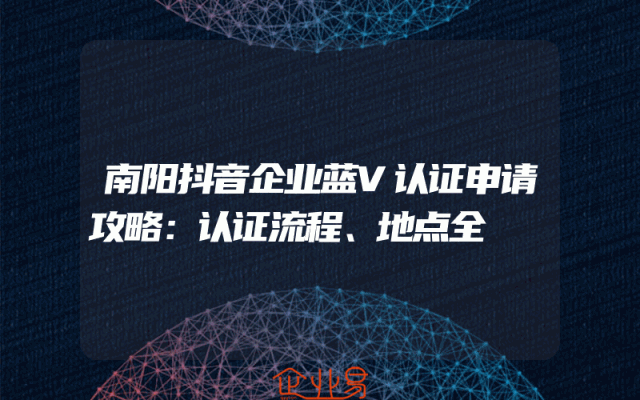 - 南阳抖音企业蓝V认证申请攻略:认证流程、地点全