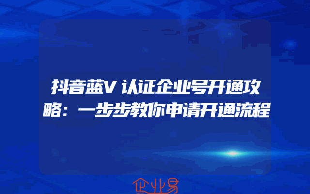 - 抖音蓝V认证企业号开通攻略:一步步教你申请开通流程
