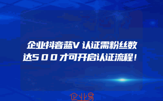- 企业抖音蓝V认证需粉丝数达500才可开启认证流程!