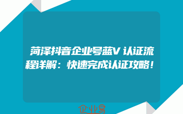 - 菏泽抖音企业号蓝V认证流程详解:快速完成认证攻略!