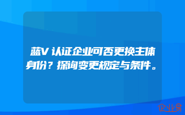 - 蓝V认证企业可否更换主体身份?探询变更规定与条件。