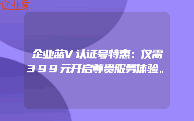- 企业蓝V认证号特惠:仅需399元开启尊贵服务体验。