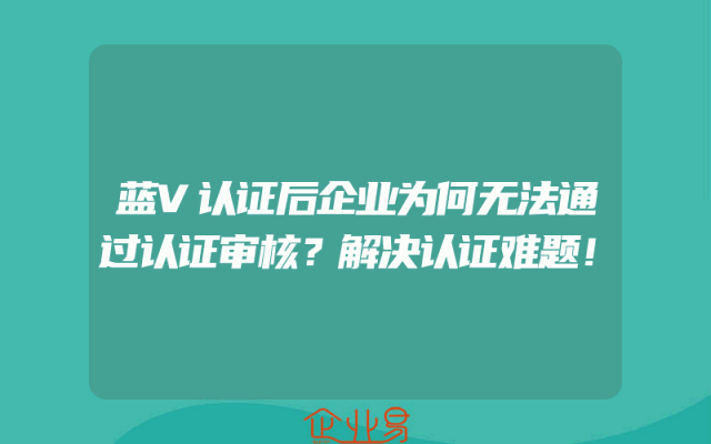 - 蓝V认证后企业为何无法通过认证审核?解决认证难题!