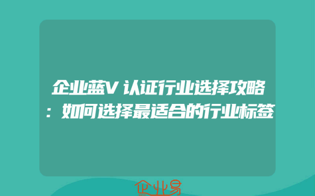- 企业蓝V认证行业选择攻略:如何选择最适合的行业标签