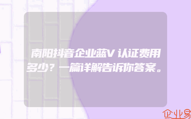 - 南阳抖音企业蓝V认证费用多少?一篇详解告诉你答案。
