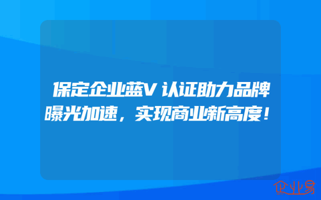 - 保定企业蓝V认证助力品牌曝光加速,实现商业新高度!