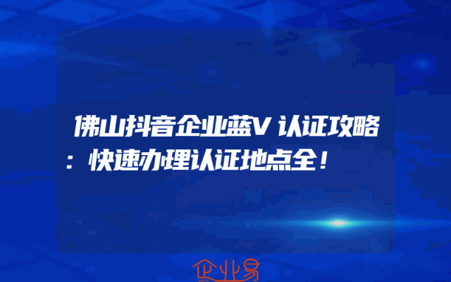 - 佛山抖音企业蓝V认证攻略:快速办理认证地点全!