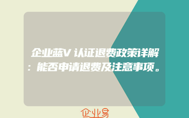 - 企业蓝V认证退费政策详解:能否申请退费及注意事项。