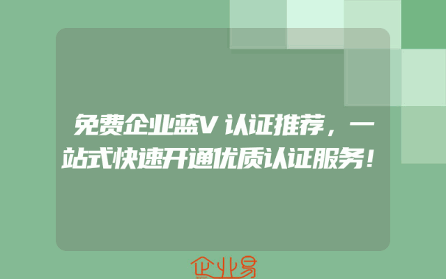 - 免费企业蓝V认证推荐,一站式快速开通优质认证服务!