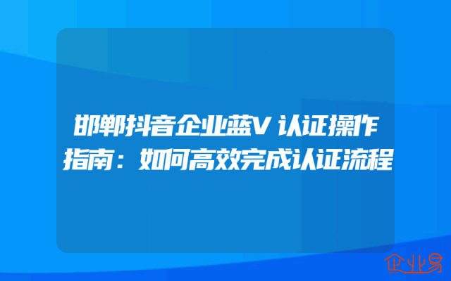- 邯郸抖音企业蓝V认证操作指南:如何高效完成认证流程