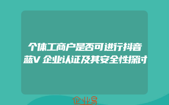- 个体工商户是否可进行抖音蓝V企业认证及其安全性探讨