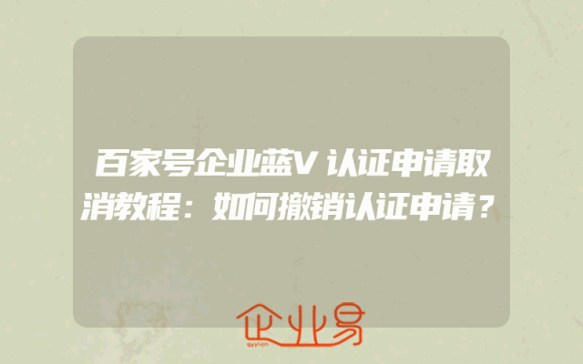 - 百家号企业蓝V认证申请取消教程:如何撤销认证申请?