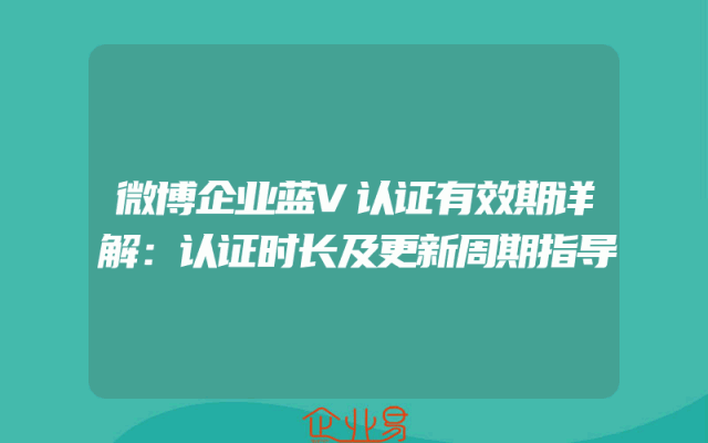 - 微博企业蓝V认证有效期详解:认证时长及更新周期指导
