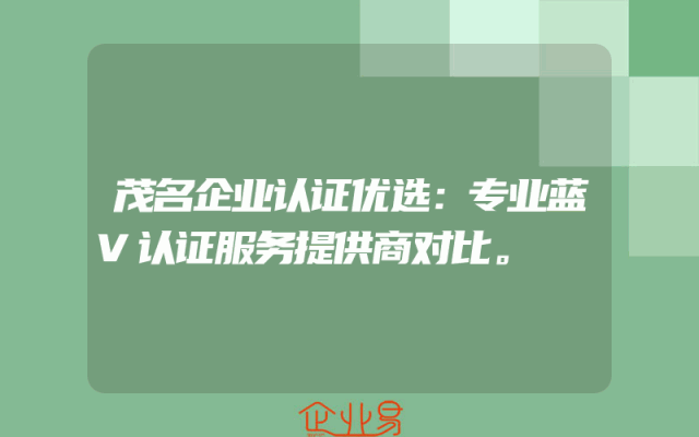- 茂名企业认证优选:专业蓝V认证服务提供商对比。