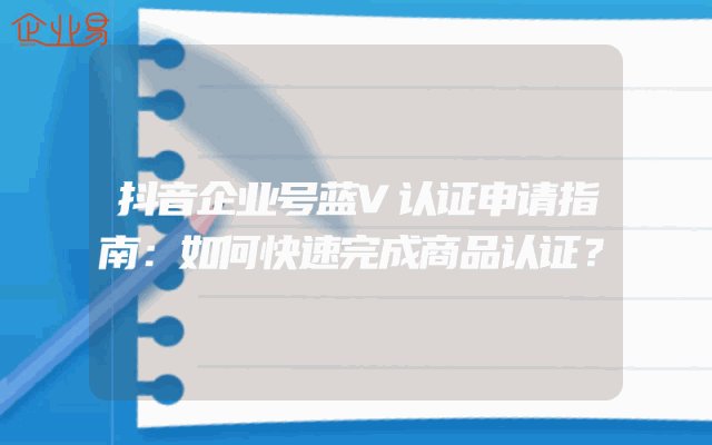 - 抖音企业号蓝V认证申请指南:如何快速完成商品认证?