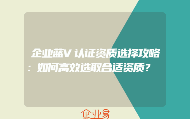 - 企业蓝V认证资质选择攻略:如何高效选取合适资质?