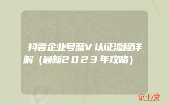 - 抖音企业号蓝V认证流程详解(最新2023年攻略)