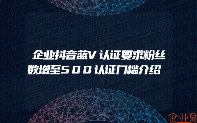 - 企业抖音蓝V认证要求粉丝数增至500认证门槛介绍