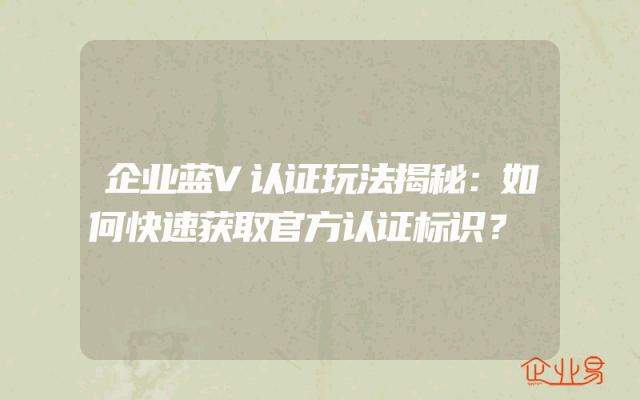 - 企业蓝V认证玩法揭秘:如何快速获取官方认证标识?