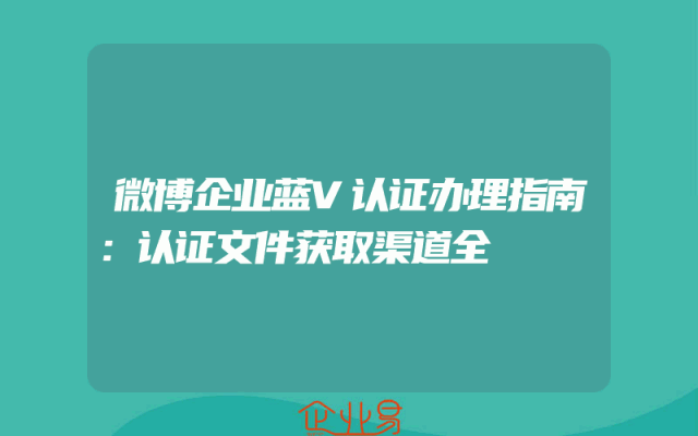- 微博企业蓝V认证办理指南:认证文件获取渠道全