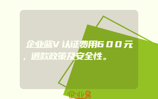 - 企业蓝V认证费用600元,退款政策及安全性。
