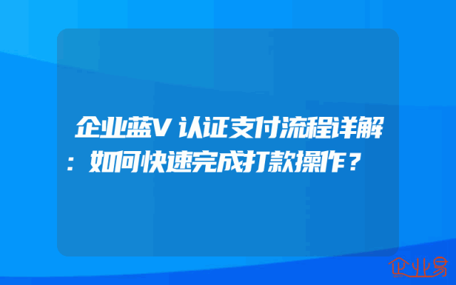 - 企业蓝V认证支付流程详解:如何快速完成打款操作?
