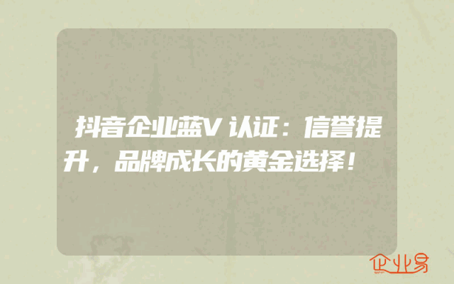 - 抖音企业蓝V认证:信誉提升,品牌成长的黄金选择!